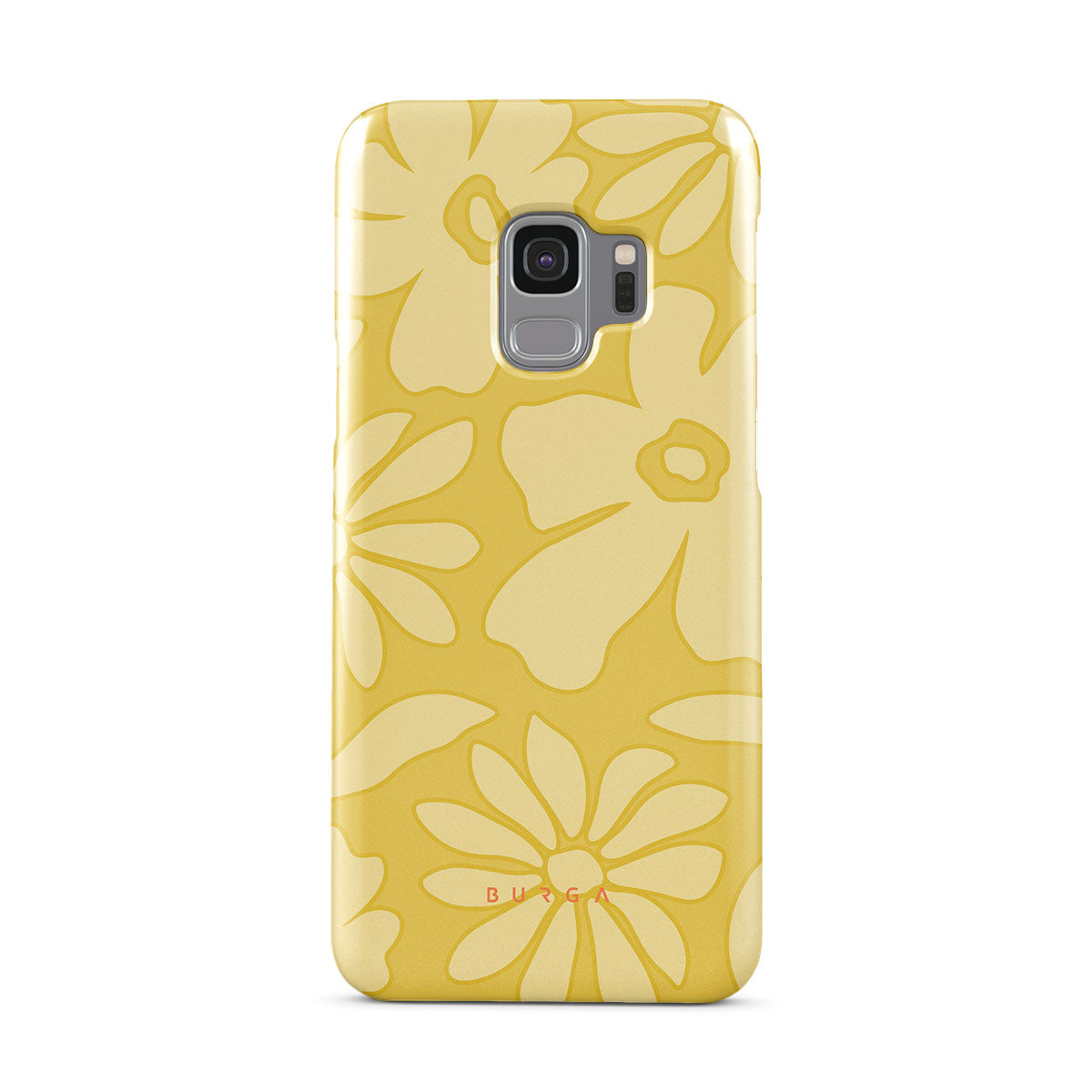 Our bright yellow Samsung Galaxy S9 phone case features bold, beautiful flowers that evoke a sense of nostalgia and happiness. This cheerful floral design captures the essence of joyful moments, making your device a reminder of sunny memories. Perfect for brightening up your day.