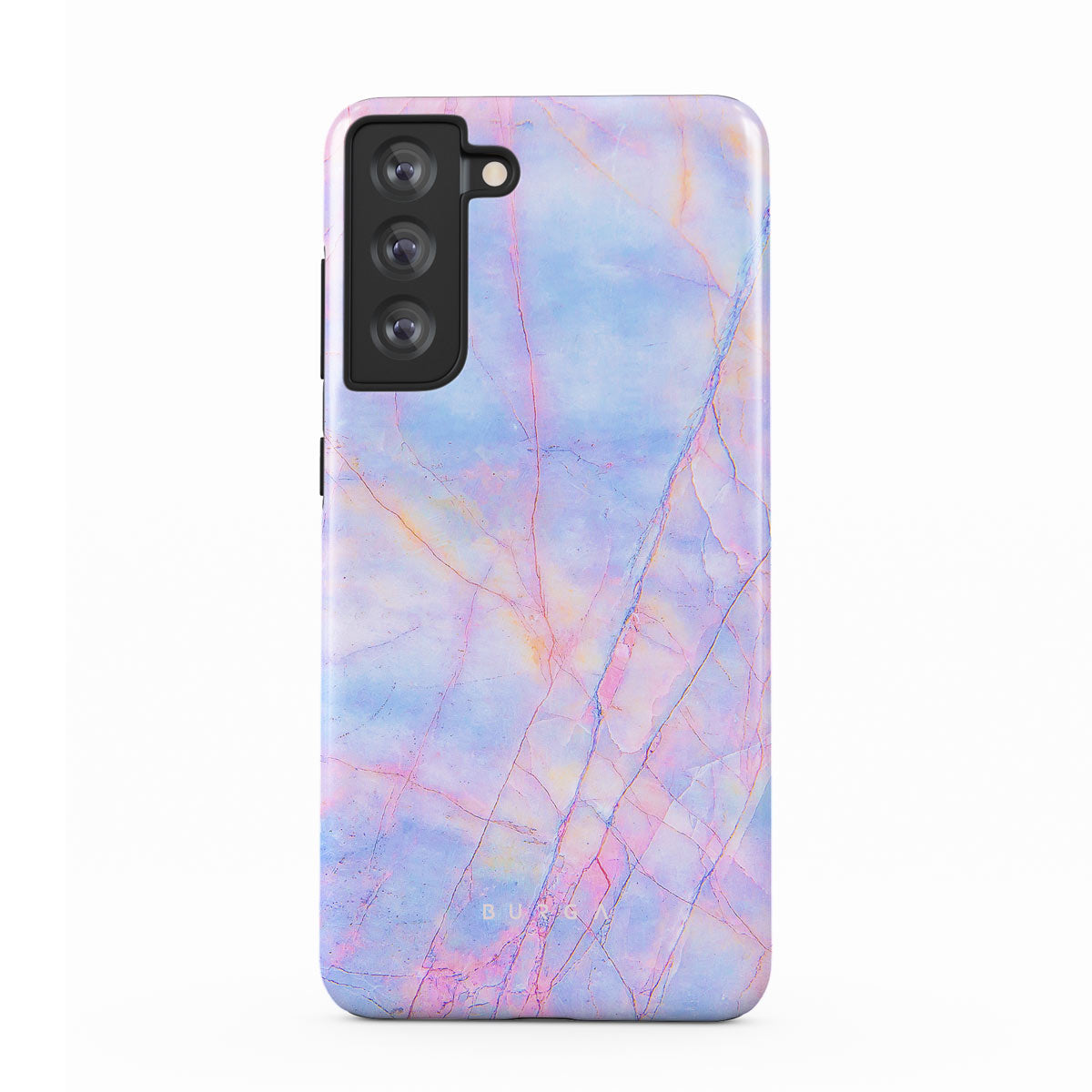 Sweet, fluffy, and dissolves so easily. Take a soft pastel Samsung Galaxy S21 FE phone case inspired by the cotton candy to remind you of the rides in the Ferris wheel. Do not let the delicate look deceive you, as this case still offers heavy-duty protection for your phone.