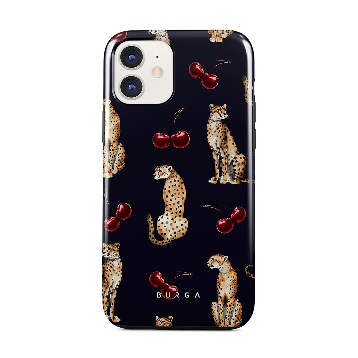 This design features: cheetah patterns, cheetahs, cherries