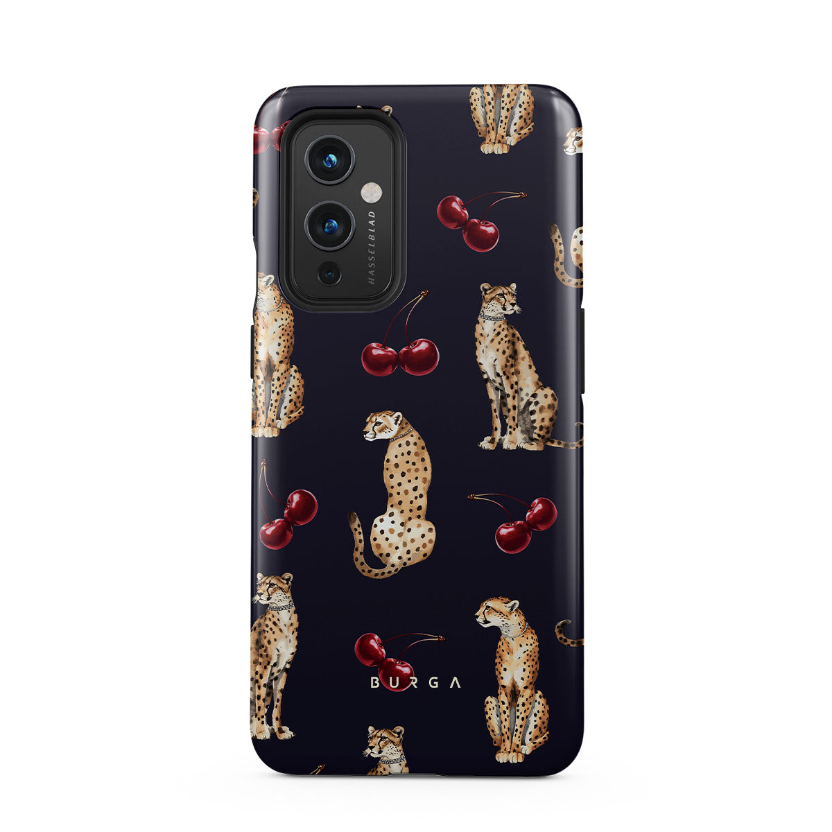 This design features: cheetah patterns, cheetahs, cherries