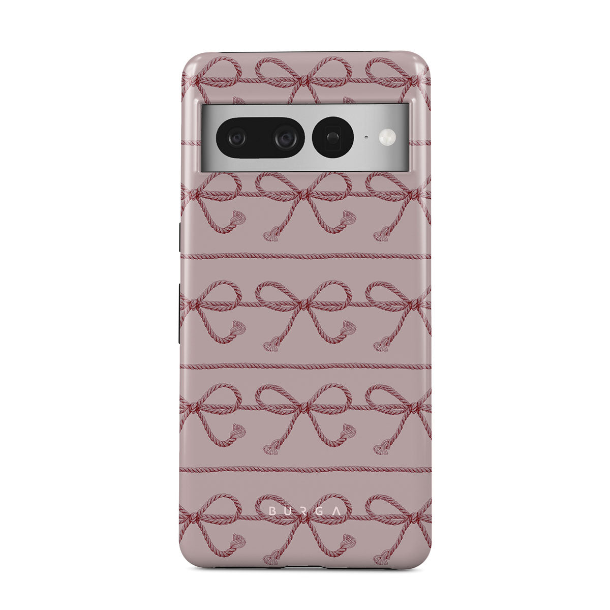 This design features: pink bows, pink background, ropes, playful pattern.