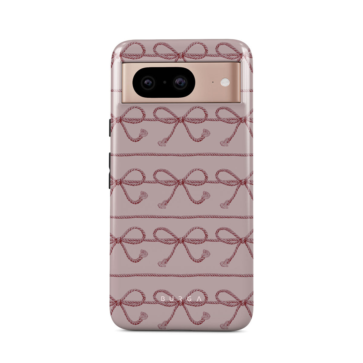 This design features: pink bows, pink background, ropes, playful pattern.