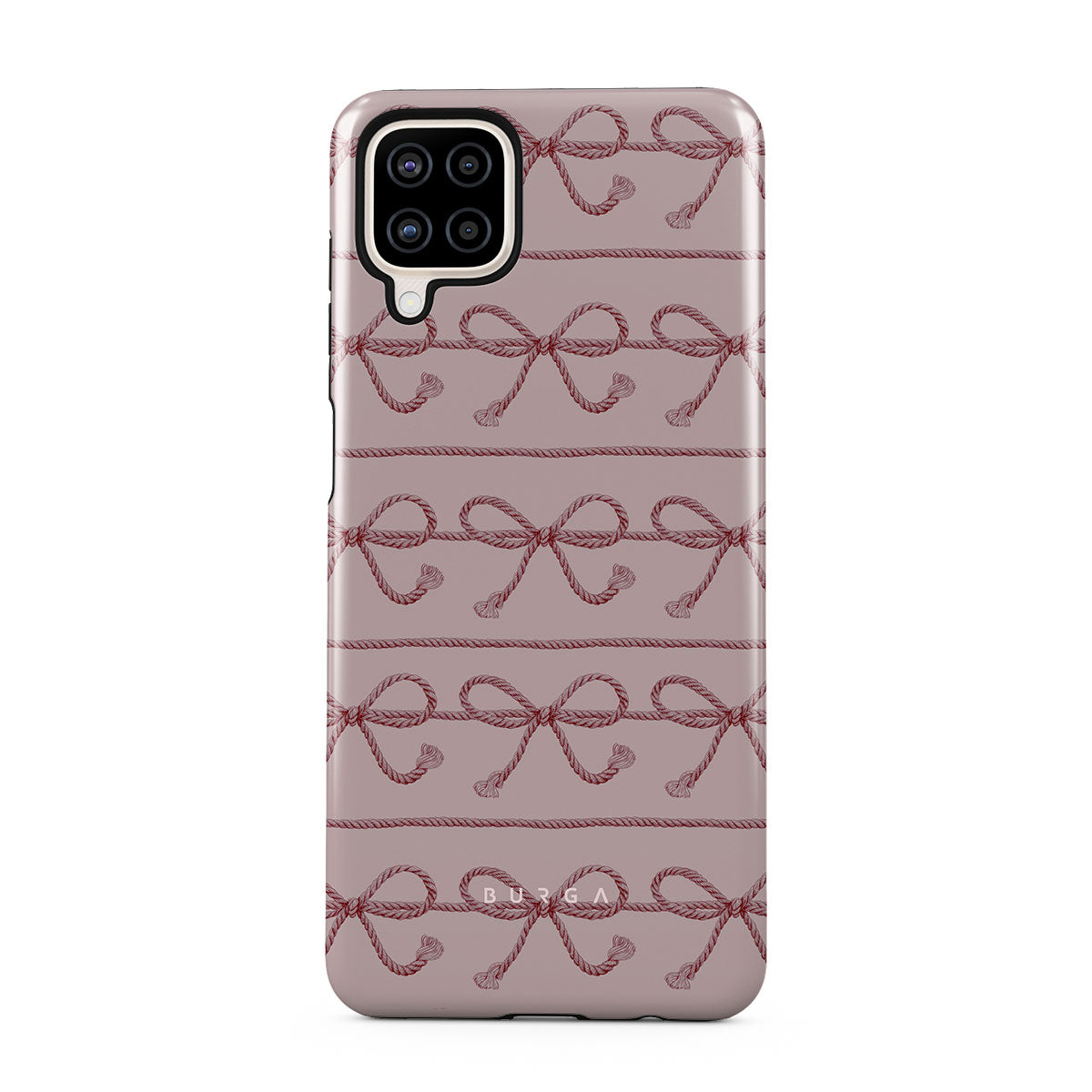 This design features: pink bows, pink background, ropes, playful pattern.
