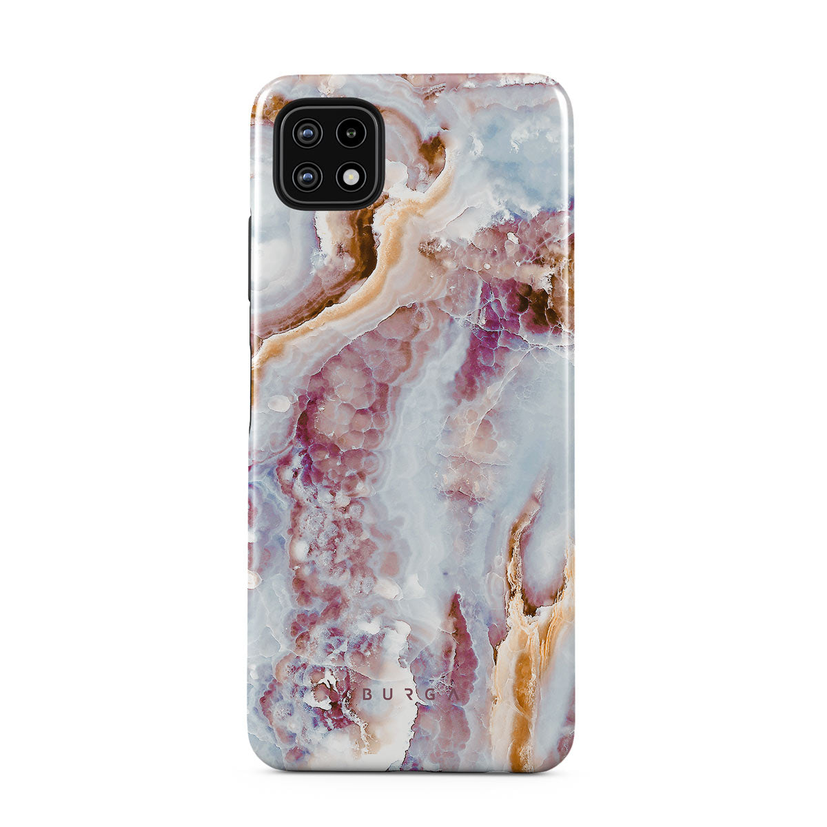 What frost can create on the surfaces is perfectly imperfect. The cute marble pattern of our hard-shell Samsung Galaxy A22 5G phone case inspired by the frozen leaves adds a splash of color in a dreamy blue background, becoming a beautiful part of anyone's style.