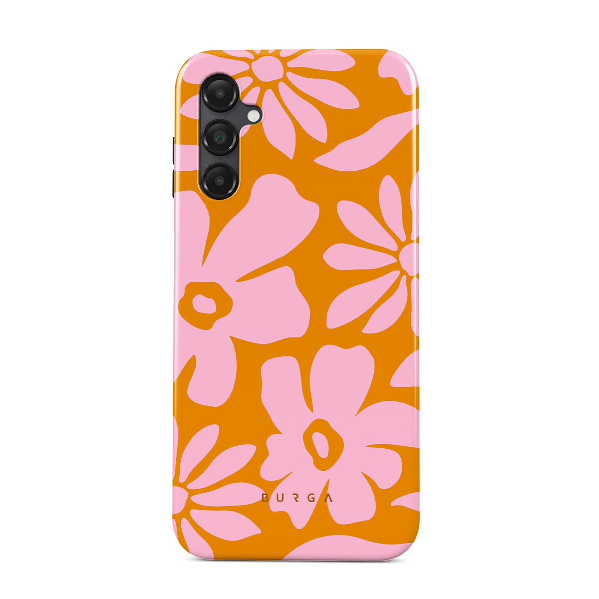 Step into a world of vibrant celebration with our Daytime Fiesta. Delicate pastel pink flowers dance against a backdrop of electrifying orange, creating a captivating fusion of color. Embrace the positive energy of this beautiful design and let your Samsung Galaxy A25 phone case radiate the spirit of a lively fiesta wherever you go.