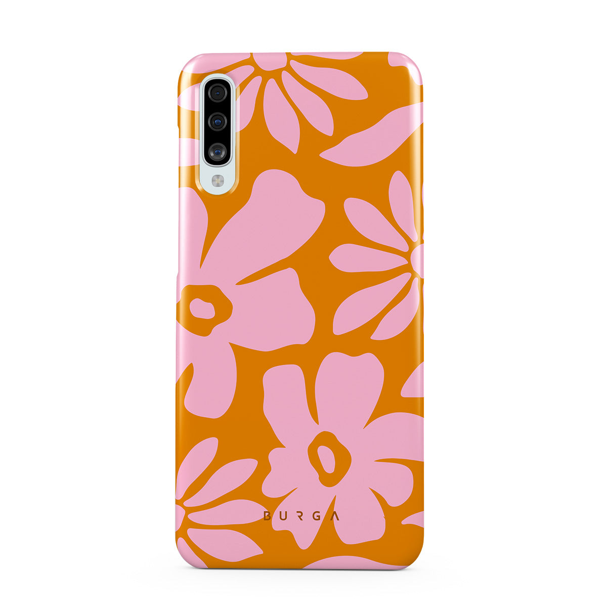 Step into a world of vibrant celebration with our Daytime Fiesta. Delicate pastel pink flowers dance against a backdrop of electrifying orange, creating a captivating fusion of color. Embrace the positive energy of this beautiful design and let your Samsung Galaxy A50 phone case radiate the spirit of a lively fiesta wherever you go.