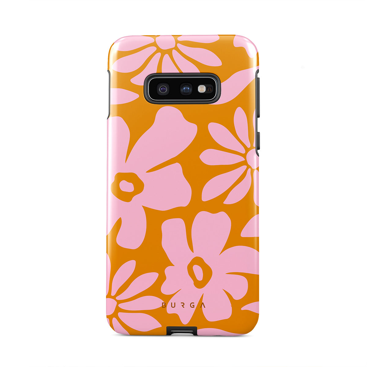 Step into a world of vibrant celebration with our Daytime Fiesta. Delicate pastel pink flowers dance against a backdrop of electrifying orange, creating a captivating fusion of color. Embrace the positive energy of this beautiful design and let your Samsung Galaxy S10E phone case radiate the spirit of a lively fiesta wherever you go.