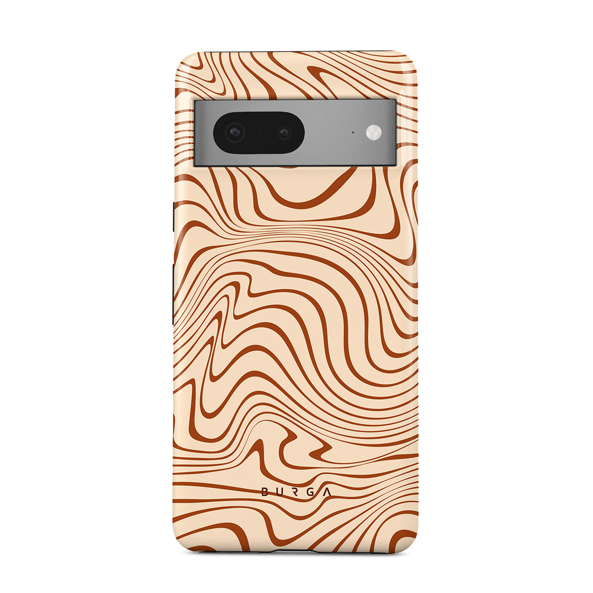 The title of our Déjà vu Google Pixel 7a phone case design is no accident! This design's feeling can only be described as the Déjà vu itself. The crème color meets the warm brown in a mesmerizing waves pattern that will surely add a touch of old times charm to your device.