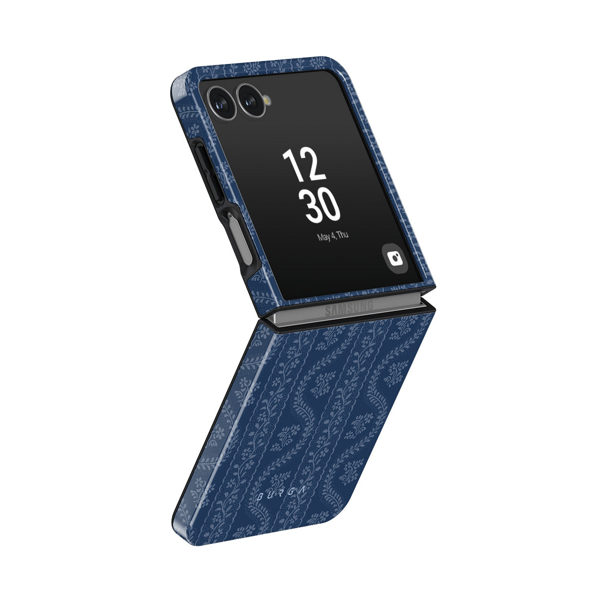 This design features: paisley, denim-inspired, vintage, classic, intricate patterns, blue tones .