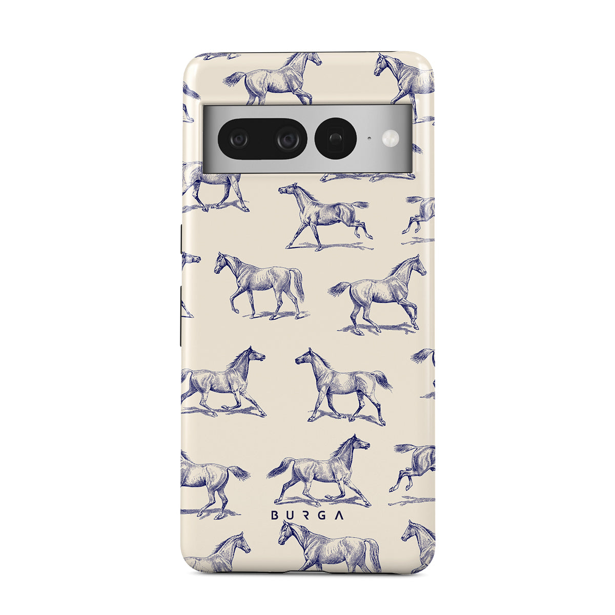Introducing our Derby Race Google Pixel 7 Pro phone case designa portrait of elegance in motion on a soft nude canvas. Engraved in delicate blue contours, galloping horses dance upon the wind, frozen in an exquisite moment of grace.