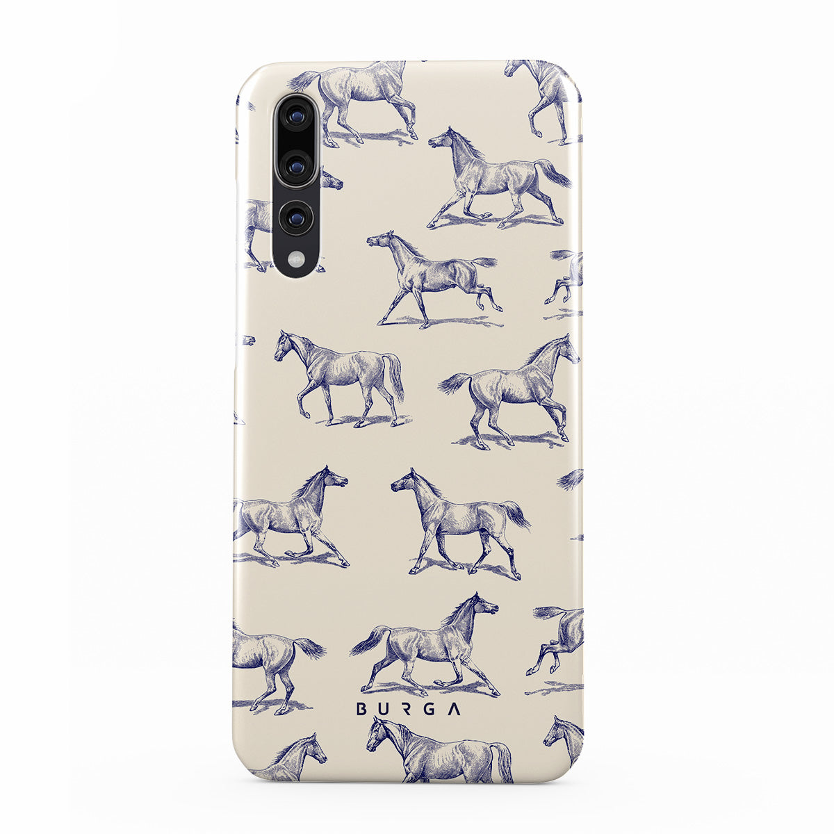 Introducing our Derby Race Huawei P20 phone case designa portrait of elegance in motion on a soft nude canvas. Engraved in delicate blue contours, galloping horses dance upon the wind, frozen in an exquisite moment of grace.