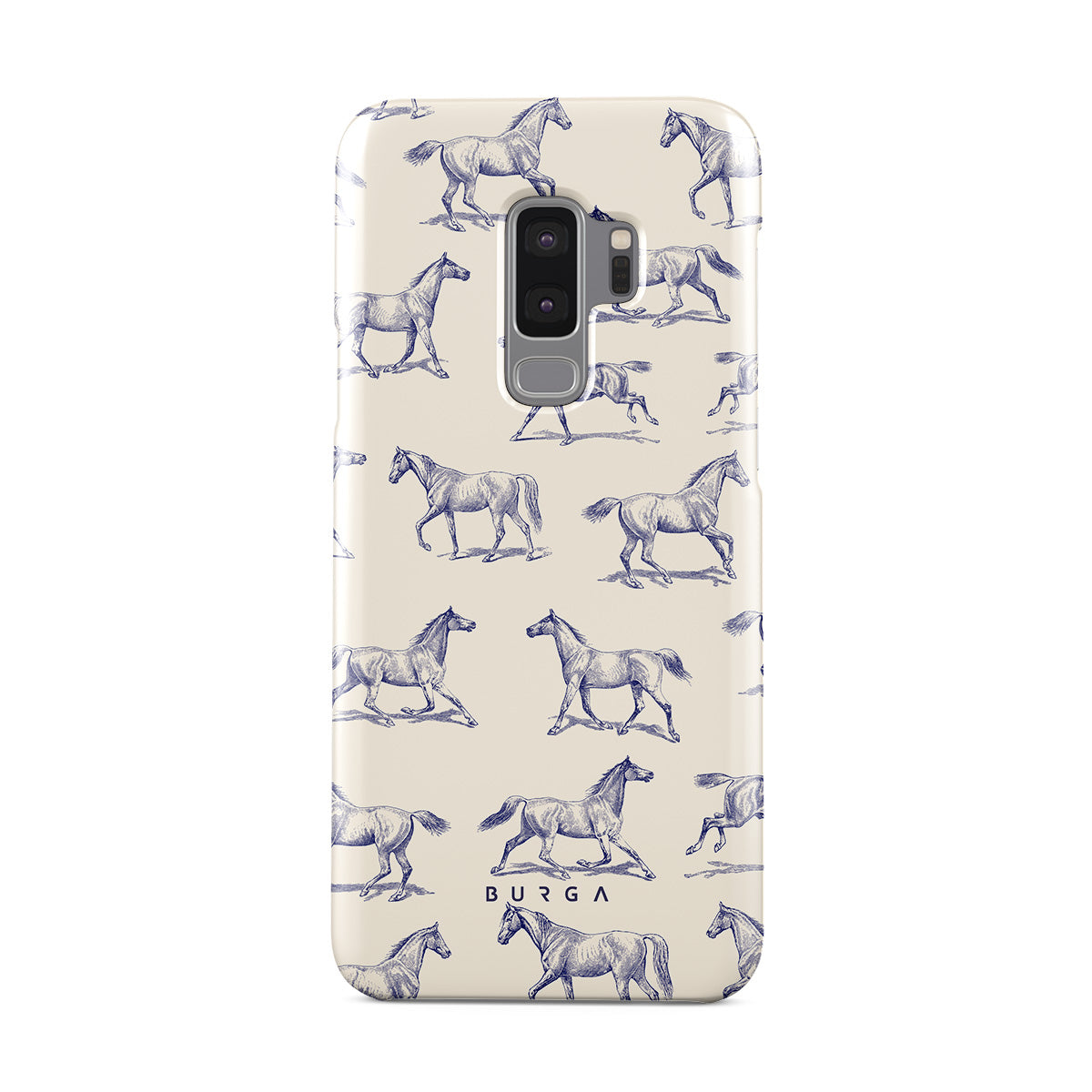 Introducing our Derby Race Samsung Galaxy S9 Plus phone case designa portrait of elegance in motion on a soft nude canvas. Engraved in delicate blue contours, galloping horses dance upon the wind, frozen in an exquisite moment of grace.