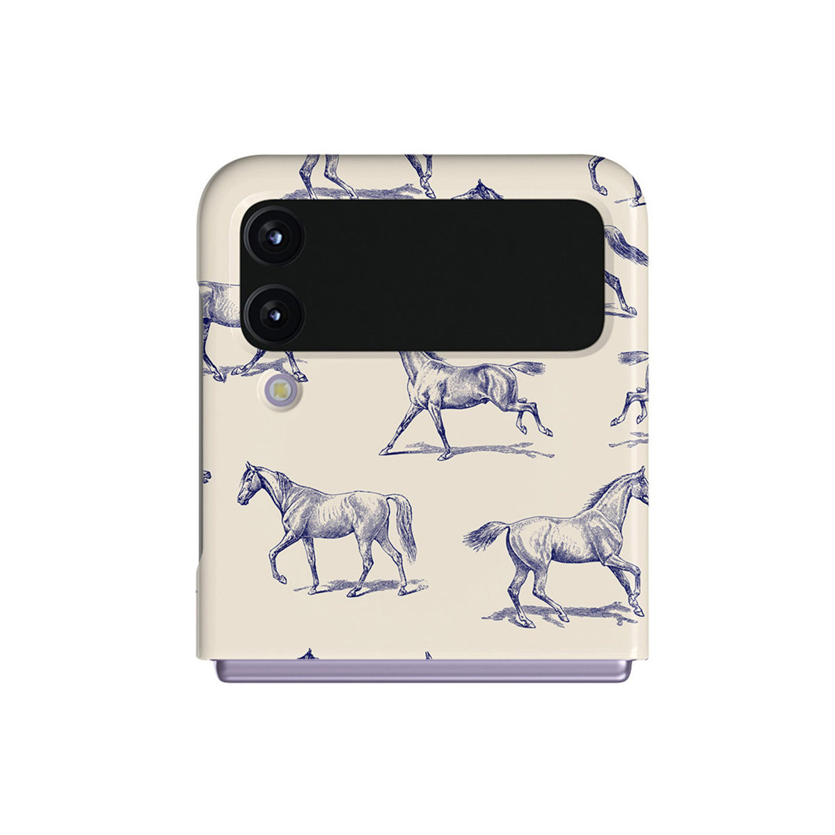 Introducing our Derby Race Samsung Galaxy Z Flip 4 phone case designa portrait of elegance in motion on a soft nude canvas. Engraved in delicate blue contours, galloping horses dance upon the wind, frozen in an exquisite moment of grace.