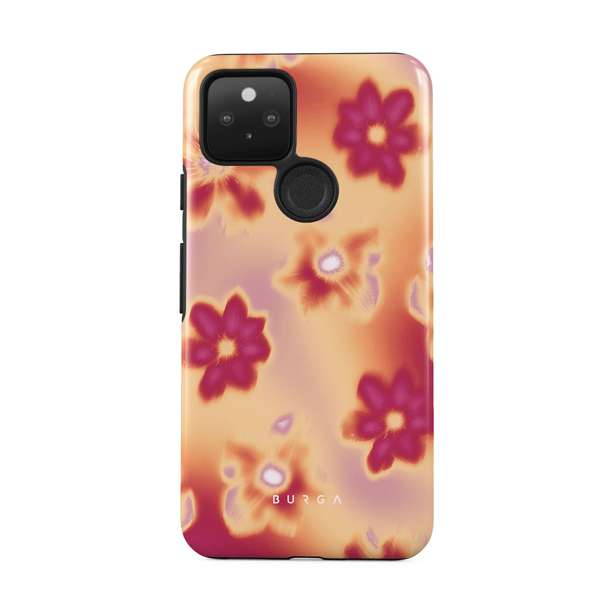Get lost in the allure of our Divine Google Pixel 5 phone case design. Picture blossoms bathed in fiery hues of pink and orange, each seemingly charged with life's raw energy. Set against a canvas that radiates power and warmth, these flowers offer more than just beauty; they resonate with the essence that binds us all.