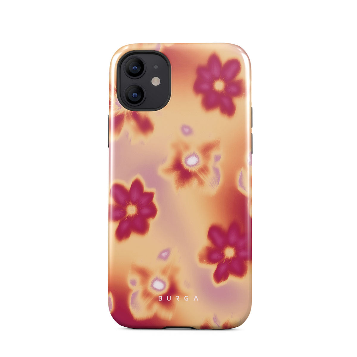 Get lost in the allure of our Divine iPhone 12 phone case design. Picture blossoms bathed in fiery hues of pink and orange, each seemingly charged with life's raw energy. Set against a canvas that radiates power and warmth, these flowers offer more than just beauty; they resonate with the essence that binds us all.