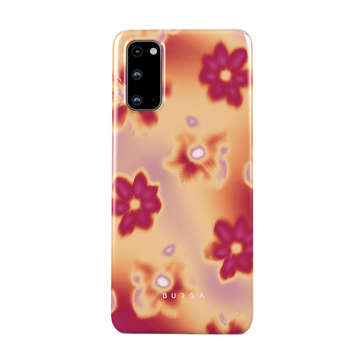 Get lost in the allure of our Divine Samsung Galaxy S20 4G / 5G phone case design. Picture blossoms bathed in fiery hues of pink and orange, each seemingly charged with life's raw energy. Set against a canvas that radiates power and warmth, these flowers offer more than just beauty; they resonate with the essence that binds us all.