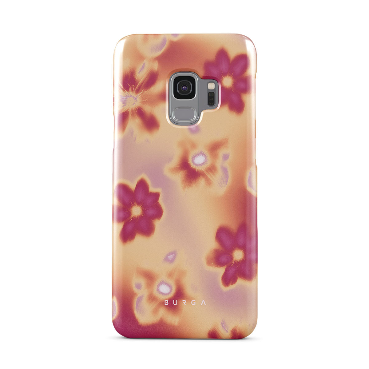 Get lost in the allure of our Divine Samsung Galaxy S9 phone case design. Picture blossoms bathed in fiery hues of pink and orange, each seemingly charged with life's raw energy. Set against a canvas that radiates power and warmth, these flowers offer more than just beauty; they resonate with the essence that binds us all.