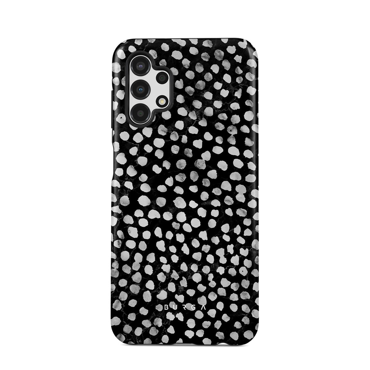 Dark, endless with flickering stars. Keep a part of the night sky in your pocket with Samsung Galaxy A13 4G phone case cover inspired by the sky above us. The classy dotted pattern found on the case is a must in every accessory lover's collection.