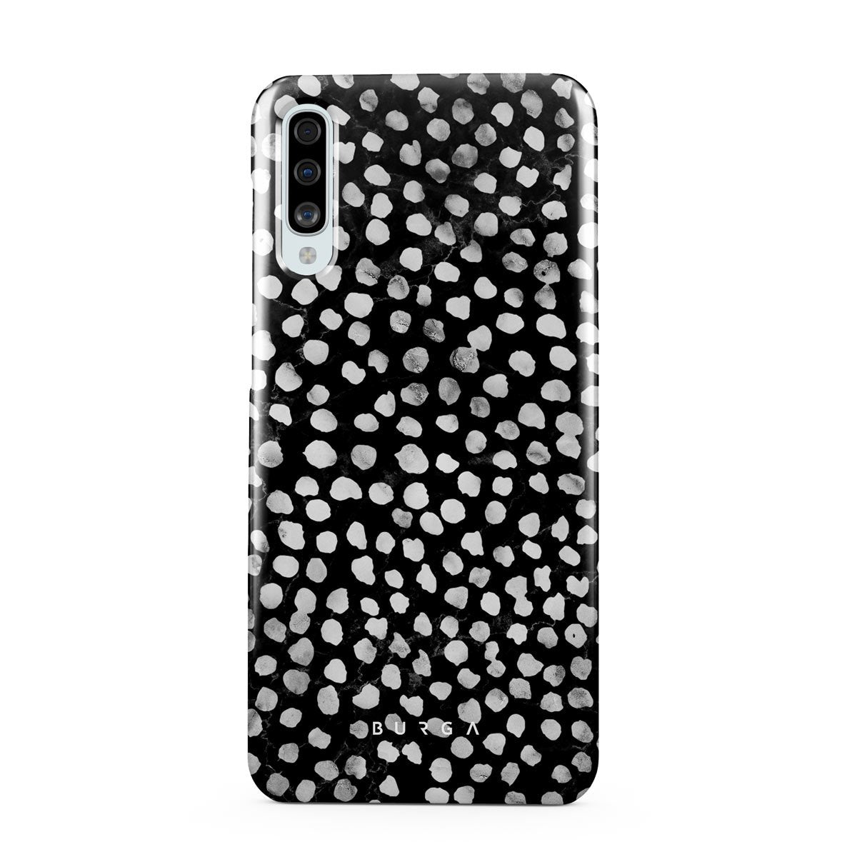 Dark, endless with flickering stars. Keep a part of the night sky in your pocket with Samsung Galaxy A50 phone case cover inspired by the sky above us. The classy dotted pattern found on the case is a must in every accessory lover's collection.