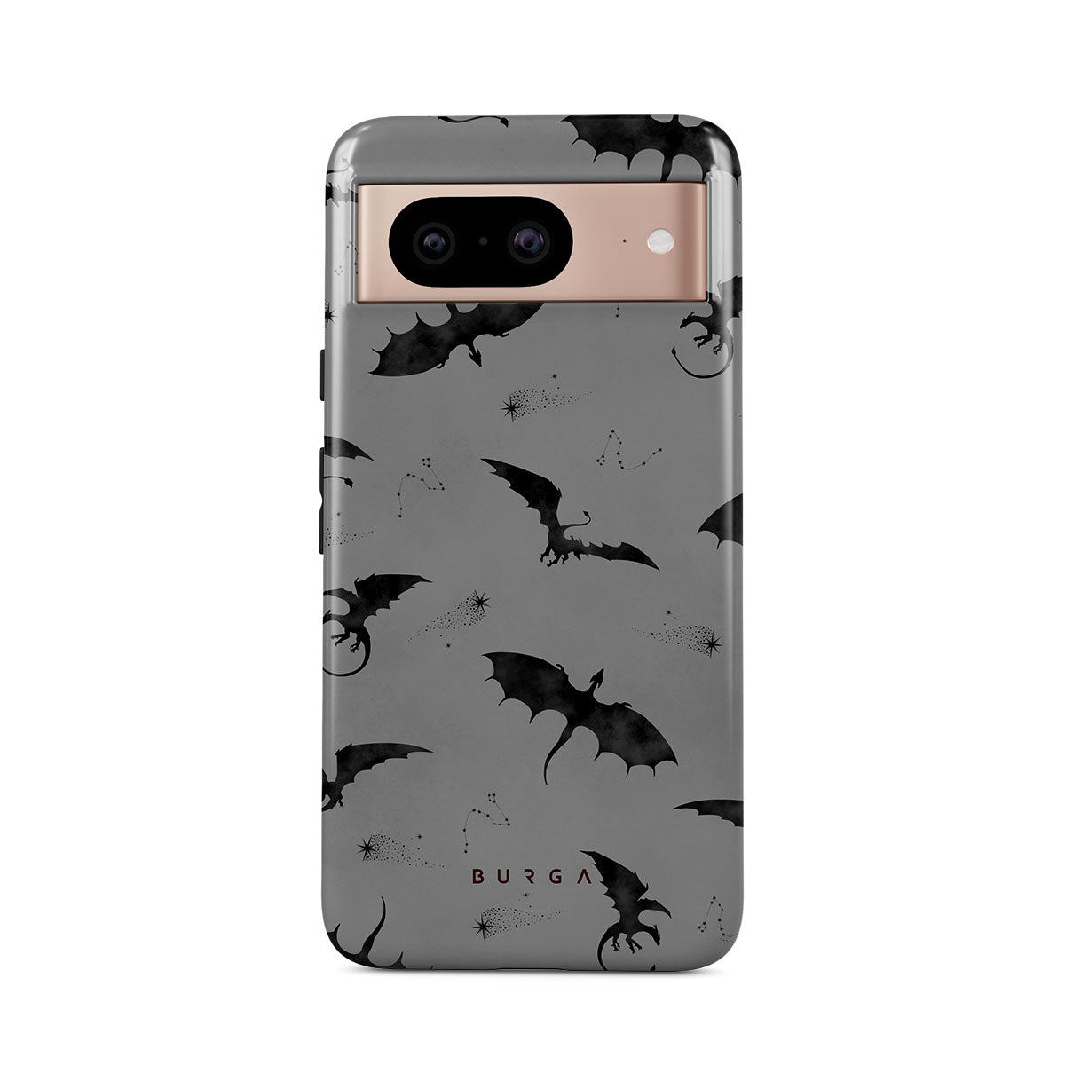 Under the dusk's veil, Draco takes flight, its bats whispering secrets to those who dare. Bold yet elusive, this Google Pixel 8 phone case design invites you to embrace the unknown and let the wings of mystery guide your night—where will they take you?