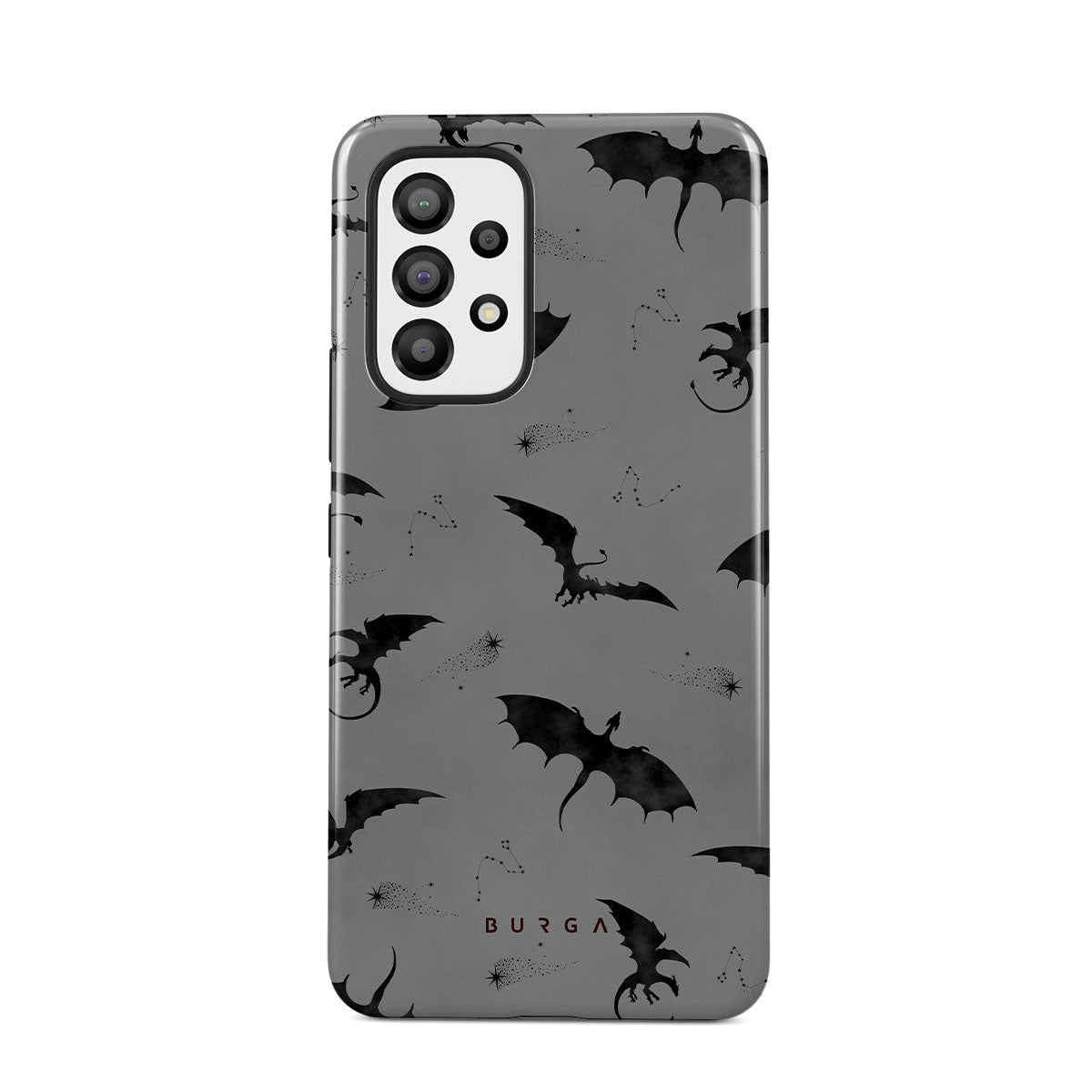 Under the dusk's veil, Draco takes flight, its bats whispering secrets to those who dare. Bold yet elusive, this Samsung Galaxy A33 phone case design invites you to embrace the unknown and let the wings of mystery guide your night—where will they take you?