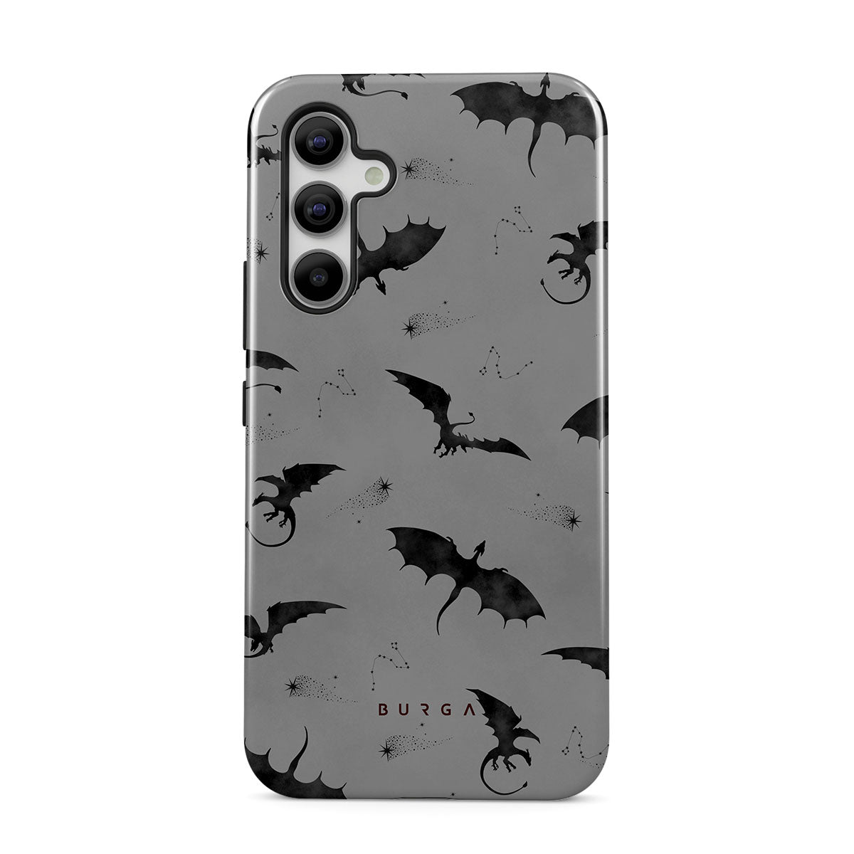 Under the dusk's veil, Draco takes flight, its bats whispering secrets to those who dare. Bold yet elusive, this Samsung Galaxy A54 phone case design invites you to embrace the unknown and let the wings of mystery guide your night—where will they take you?