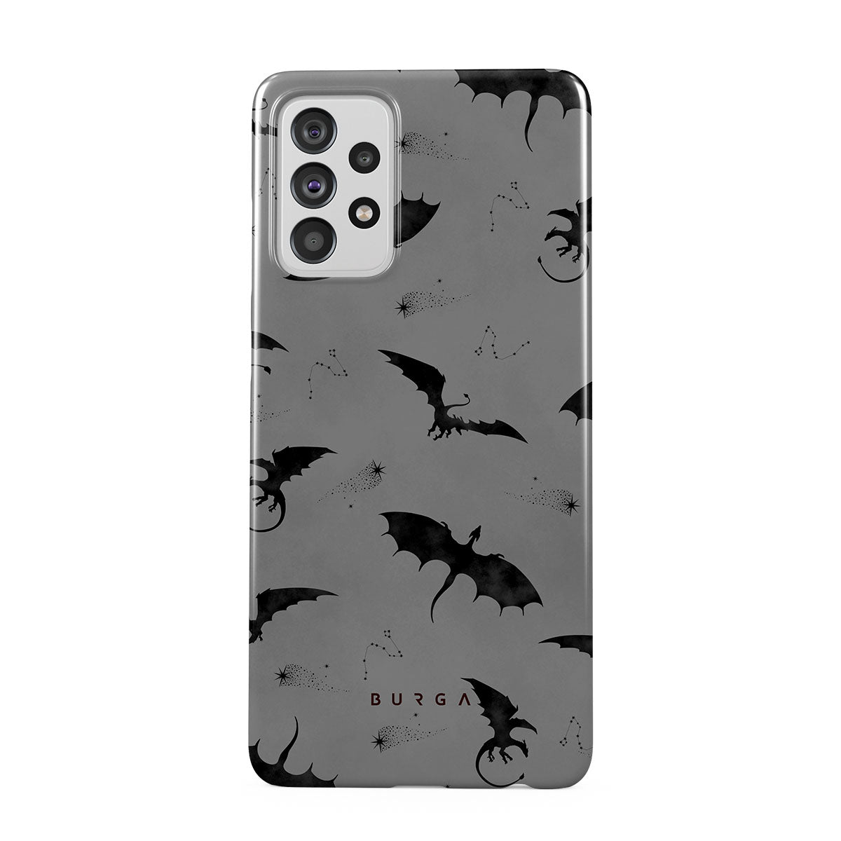 Under the dusk's veil, Draco takes flight, its bats whispering secrets to those who dare. Bold yet elusive, this Samsung Galaxy A72 4G / 5G phone case design invites you to embrace the unknown and let the wings of mystery guide your night—where will they take you?
