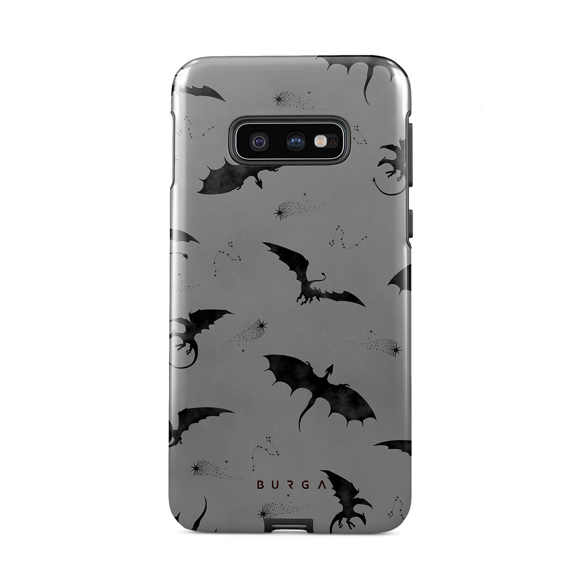 Under the dusk's veil, Draco takes flight, its bats whispering secrets to those who dare. Bold yet elusive, this Samsung Galaxy S10E phone case design invites you to embrace the unknown and let the wings of mystery guide your night—where will they take you?