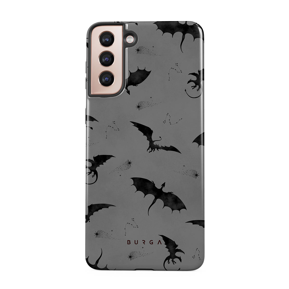 Under the dusk's veil, Draco takes flight, its bats whispering secrets to those who dare. Bold yet elusive, this Samsung Galaxy S21 Plus phone case design invites you to embrace the unknown and let the wings of mystery guide your night—where will they take you?