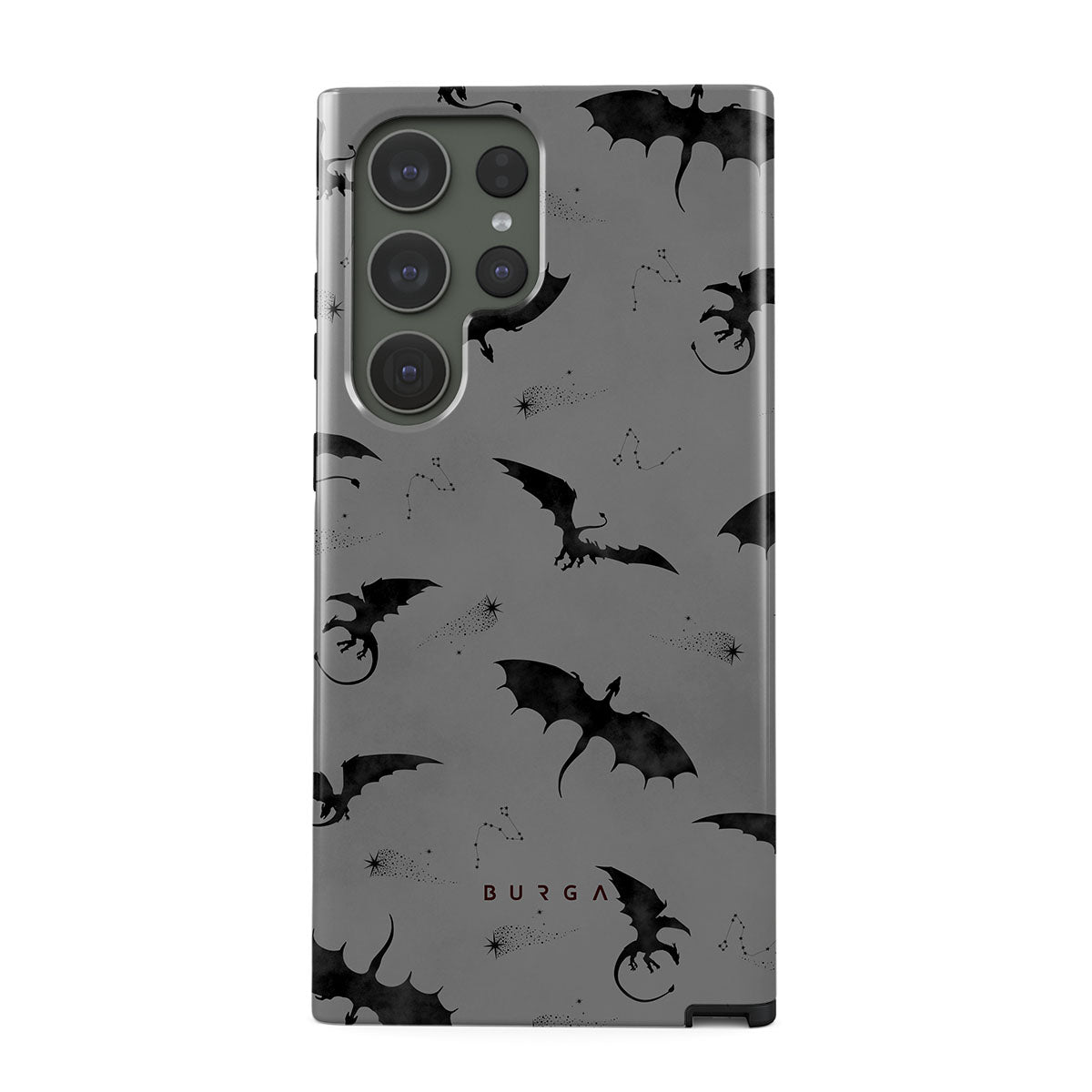 Under the dusk's veil, Draco takes flight, its bats whispering secrets to those who dare. Bold yet elusive, this Samsung Galaxy S23 Ultra phone case design invites you to embrace the unknown and let the wings of mystery guide your night—where will they take you?
