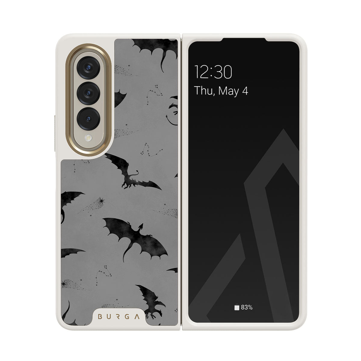 Under the dusk's veil, Draco takes flight, its bats whispering secrets to those who dare. Bold yet elusive, this Samsung Galaxy Z Fold 4 phone case design invites you to embrace the unknown and let the wings of mystery guide your night—where will they take you?