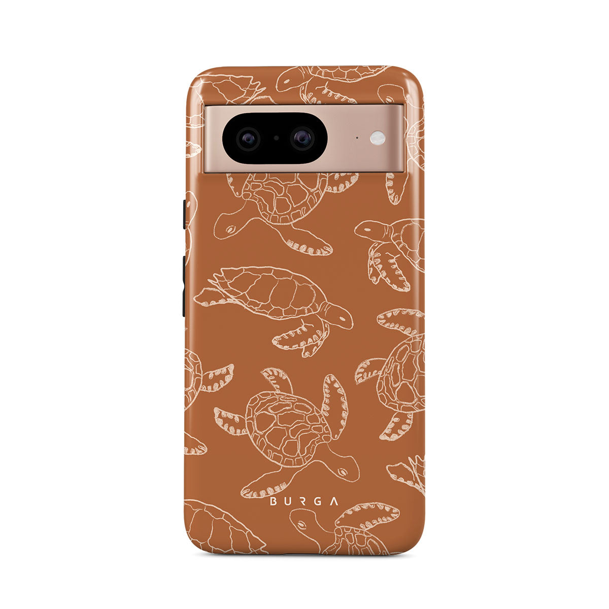 Step into a world of pure bliss and turtle magic with our Earth Shell design. The rich earth tones creating a calming ambiance blend beautifully with the playful turtles floating into adventure. Embark on a thrilling escapade to reconnect with nature with our Earth Shell Google Pixel 8 case.