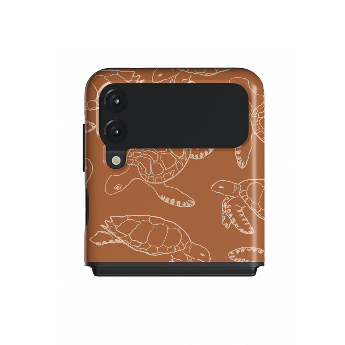 Step into a world of pure bliss and turtle magic with our Earth Shell design. The rich earth tones creating a calming ambiance blend beautifully with the playful turtles floating into adventure. Embark on a thrilling escapade to reconnect with nature with our Earth Shell Samsung Galaxy Z Flip 3 case.