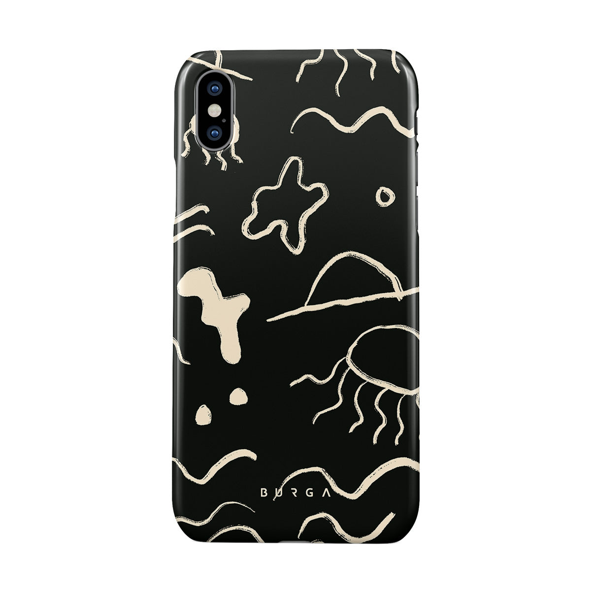 Our Eclipse iPhone X / XS design reflects the enigmatic beauty of the ocean during a solar eclipse. The dark hues and bright accents represent how the light dances on the water, while the waves and jellyfish capture the serene yet dynamic nature of the ocean.