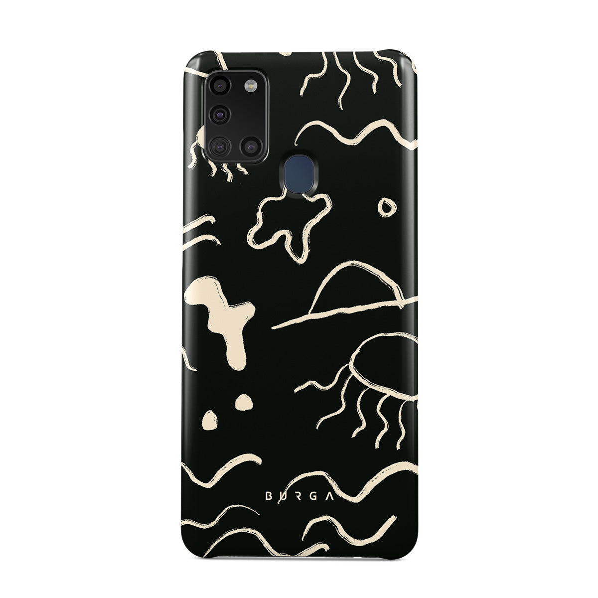 Our Eclipse Samsung Galaxy A21s 4G design reflects the enigmatic beauty of the ocean during a solar eclipse. The dark hues and bright accents represent how the light dances on the water, while the waves and jellyfish capture the serene yet dynamic nature of the ocean.