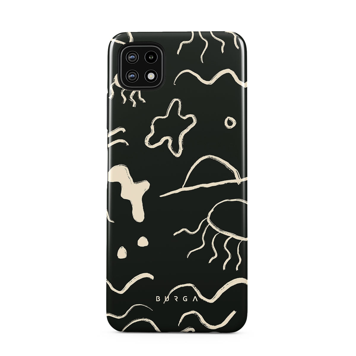 Our Eclipse Samsung Galaxy A22 5G design reflects the enigmatic beauty of the ocean during a solar eclipse. The dark hues and bright accents represent how the light dances on the water, while the waves and jellyfish capture the serene yet dynamic nature of the ocean.