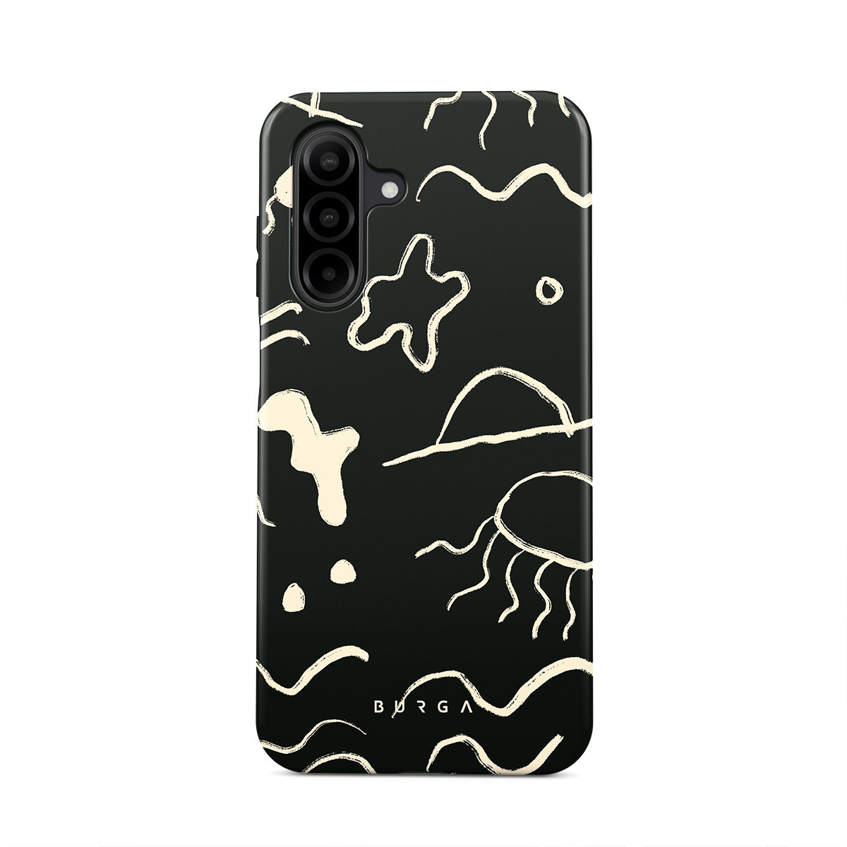 Our Eclipse Samsung Galaxy A26 5G design reflects the enigmatic beauty of the ocean during a solar eclipse. The dark hues and bright accents represent how the light dances on the water, while the waves and jellyfish capture the serene yet dynamic nature of the ocean.
