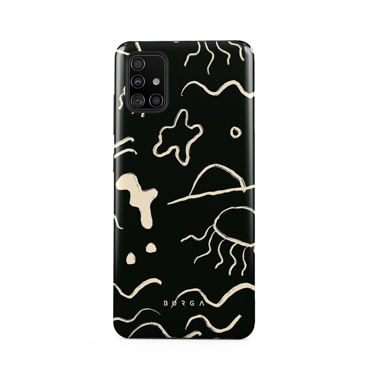 Our Eclipse Samsung Galaxy A71 4G design reflects the enigmatic beauty of the ocean during a solar eclipse. The dark hues and bright accents represent how the light dances on the water, while the waves and jellyfish capture the serene yet dynamic nature of the ocean.