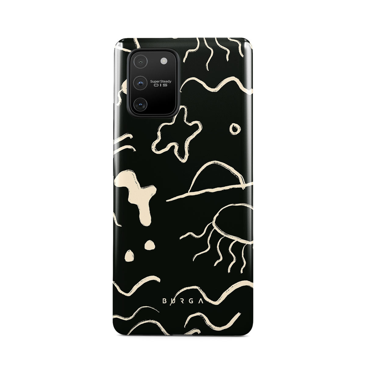 Our Eclipse Samsung Galaxy S10 Lite design reflects the enigmatic beauty of the ocean during a solar eclipse. The dark hues and bright accents represent how the light dances on the water, while the waves and jellyfish capture the serene yet dynamic nature of the ocean.