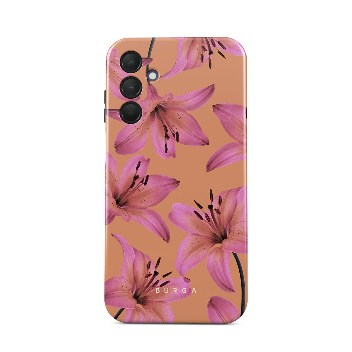 A design inspired by the effortless bloom of lilies, reflecting the beauty of embracing life's spontaneous moments. Like lilies that thrive untamed, this case reminds us to flourish in the face of change. Embodying the magic of life's unpredictable tapestry with our Eden Samsung Galaxy A15 4G / 5G phone case.