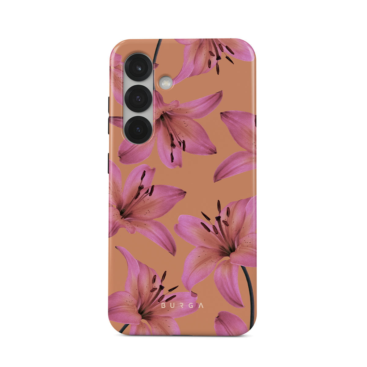 A design inspired by the effortless bloom of lilies, reflecting the beauty of embracing life's spontaneous moments. Like lilies that thrive untamed, this case reminds us to flourish in the face of change. Embodying the magic of life's unpredictable tapestry with our Eden Samsung Galaxy S25 Plus phone case.