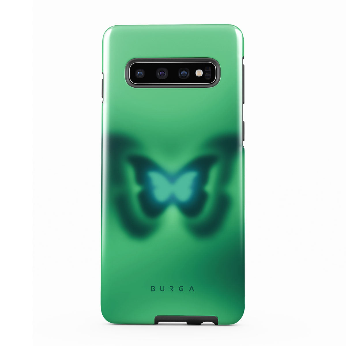 Immerse yourself in the captivating essence of Energy. This radiant Samsung Galaxy S10 4G phone case design, featuring a butterfly against a striking green background, symbolizes transformation and the excitement of new adventures. Its dynamic allure complements every OOTD.