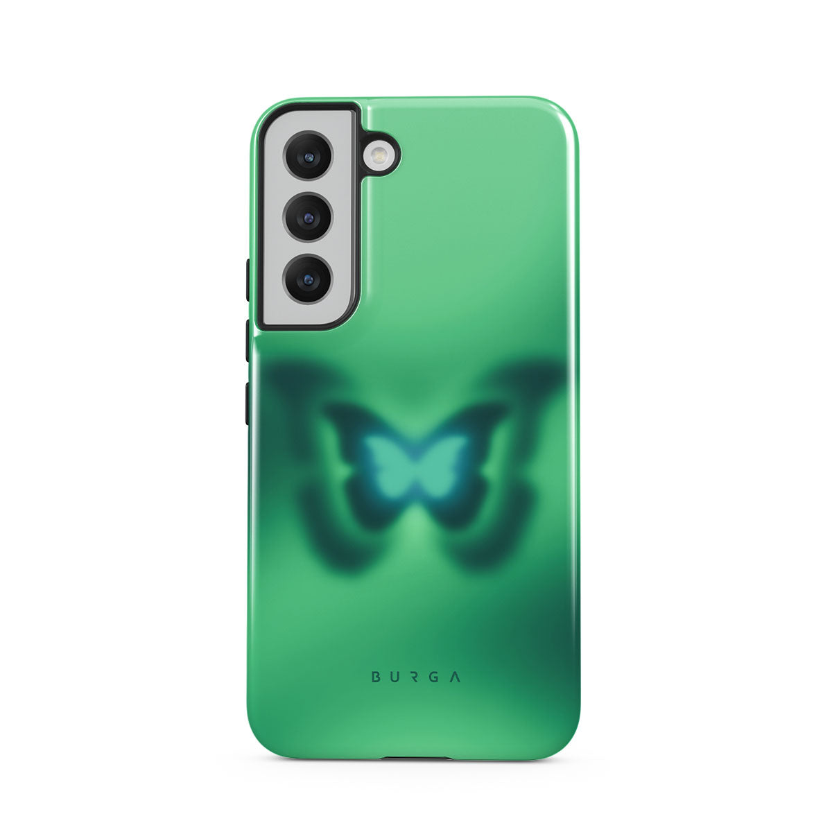 Immerse yourself in the captivating essence of Energy. This radiant Samsung Galaxy S22 Plus phone case design, featuring a butterfly against a striking green background, symbolizes transformation and the excitement of new adventures. Its dynamic allure complements every OOTD.