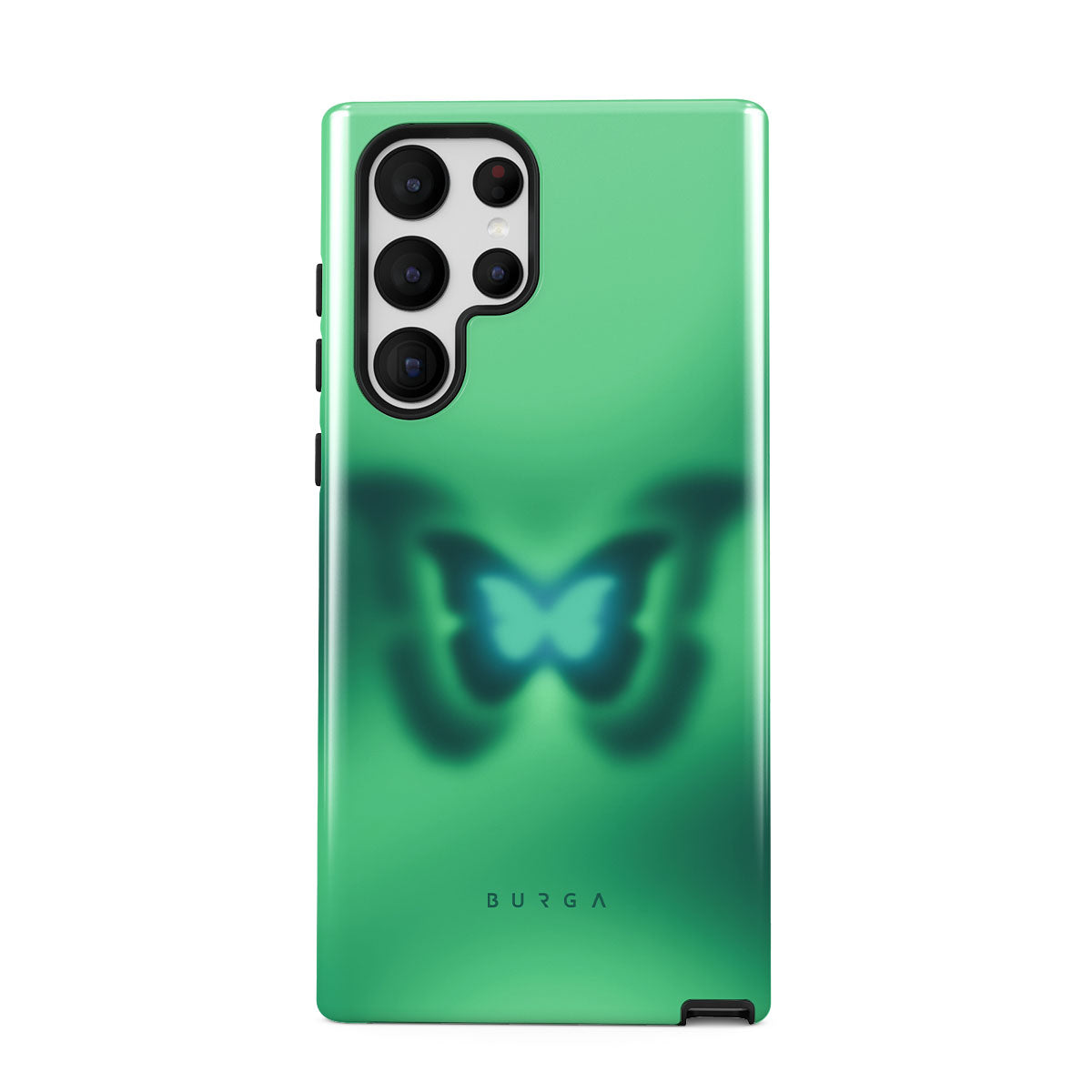 Immerse yourself in the captivating essence of Energy. This radiant Samsung Galaxy S22 Ultra phone case design, featuring a butterfly against a striking green background, symbolizes transformation and the excitement of new adventures. Its dynamic allure complements every OOTD.