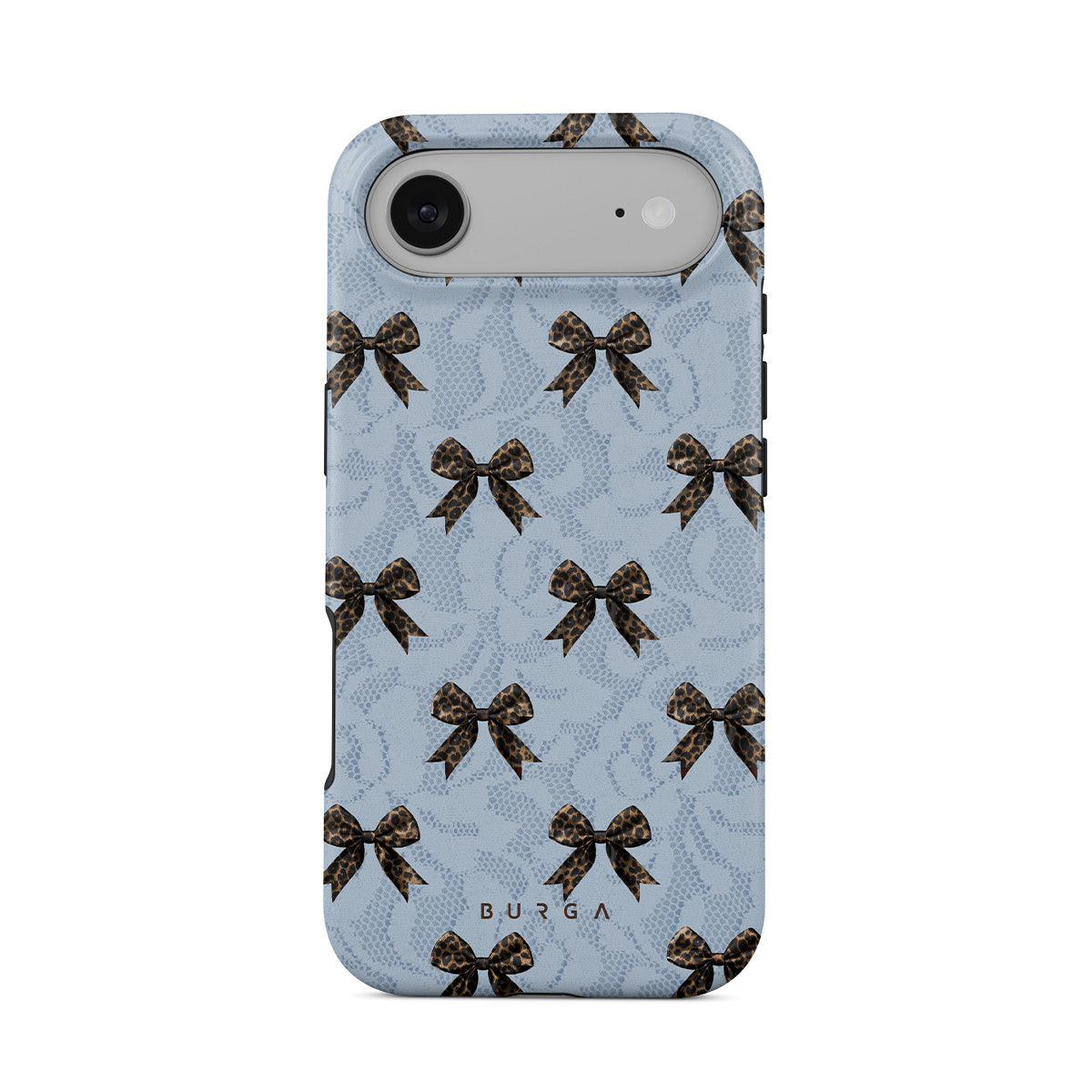 For those who command attention with subtle elegance, our Fashionista iPhone Air phone case design is your go-to. A soft blue background, accented by dark grey bows and subtle lace patterns, exudes polished, effortless style. It's quiet confidence with a hint of charm.