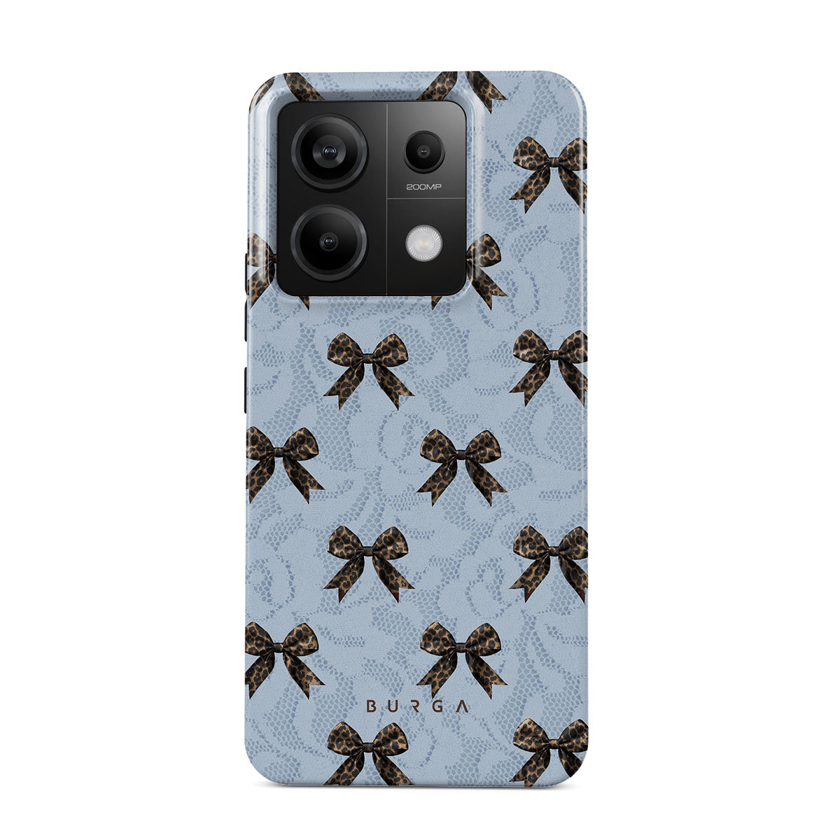 For those who command attention with subtle elegance, our Fashionista Xiaomi Redmi Note 13 Pro 5G phone case design is your go-to. A soft blue background, accented by dark grey bows and subtle lace patterns, exudes polished, effortless style. It's quiet confidence with a hint of charm.