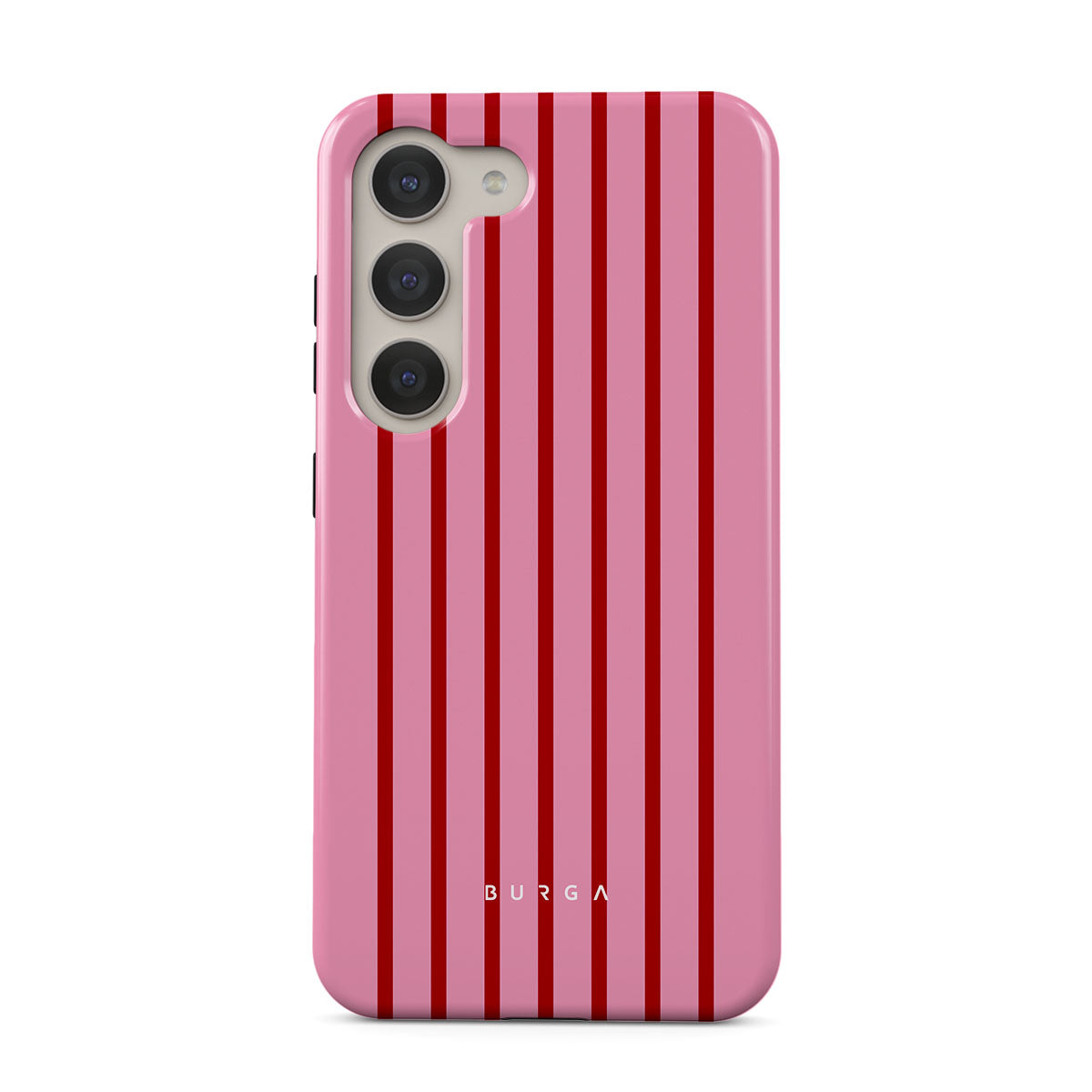 Step right up to the sweet charm of our Favorite Bikini Samsung Galaxy S23 phone case design. This vibrant array of pink and magenta stripes evokes memories of summer funfairs and whimsical candy canes.