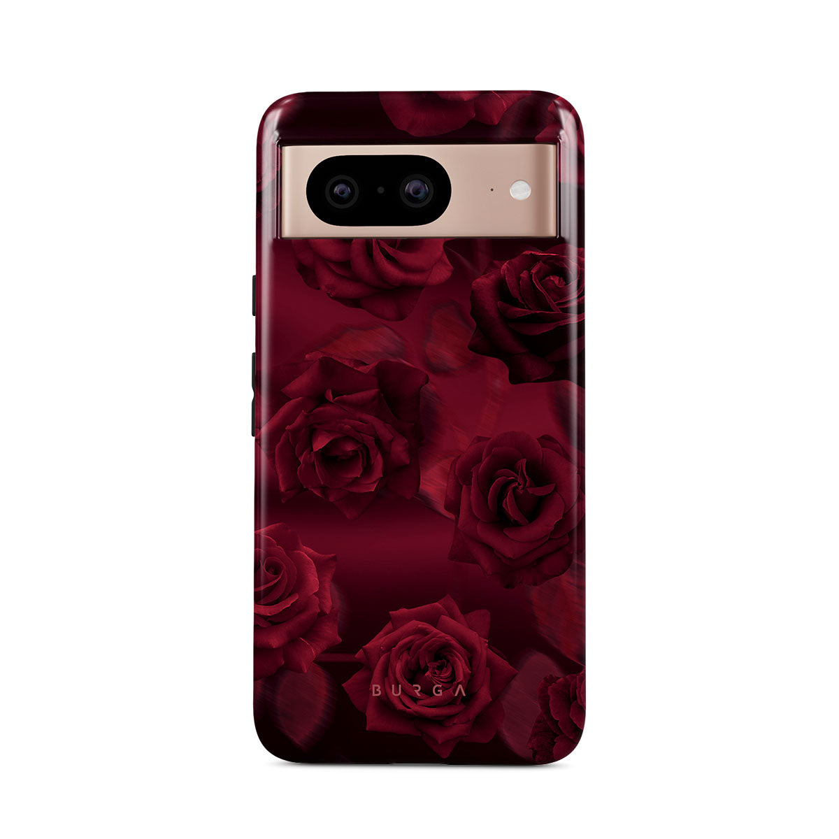 Dive into our intriguing Femme Fatale Google Pixel 8 phone case design. These deep red roses aren't just flowers—they're silent confessions of candlelit romance and moments caught in stolen glances. Crafted for those who captivate at every turn.