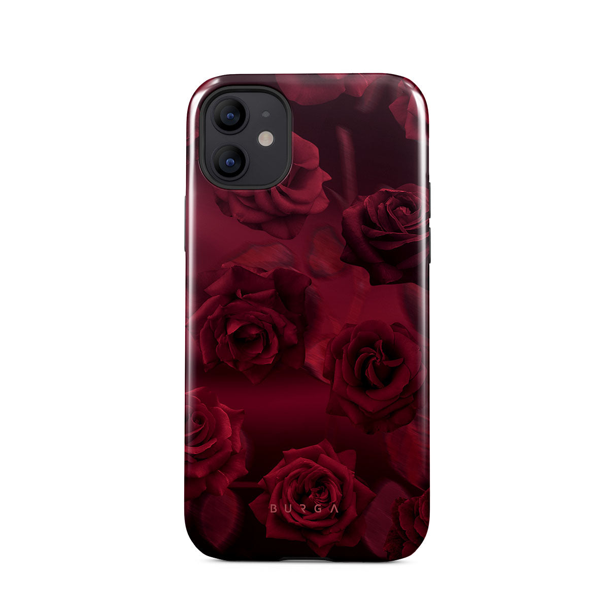 Dive into our intriguing Femme Fatale iPhone 12 phone case design. These deep red roses aren't just flowers—they're silent confessions of candlelit romance and moments caught in stolen glances. Crafted for those who captivate at every turn.