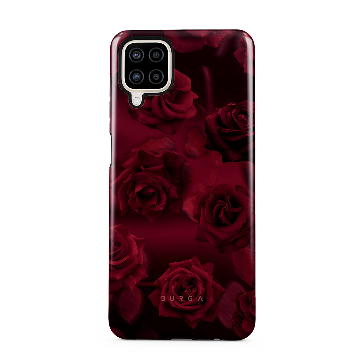 Dive into our intriguing Femme Fatale Samsung Galaxy A12 4G phone case design. These deep red roses aren't just flowers—they're silent confessions of candlelit romance and moments caught in stolen glances. Crafted for those who captivate at every turn.